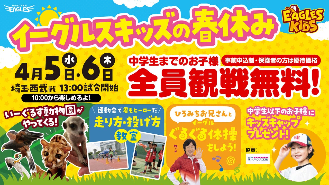 4/5(水)、6(木)『イーグルスキッズの春休み』、5/3(水・祝)、4(木・祝)『イーグルスキッズのGW』