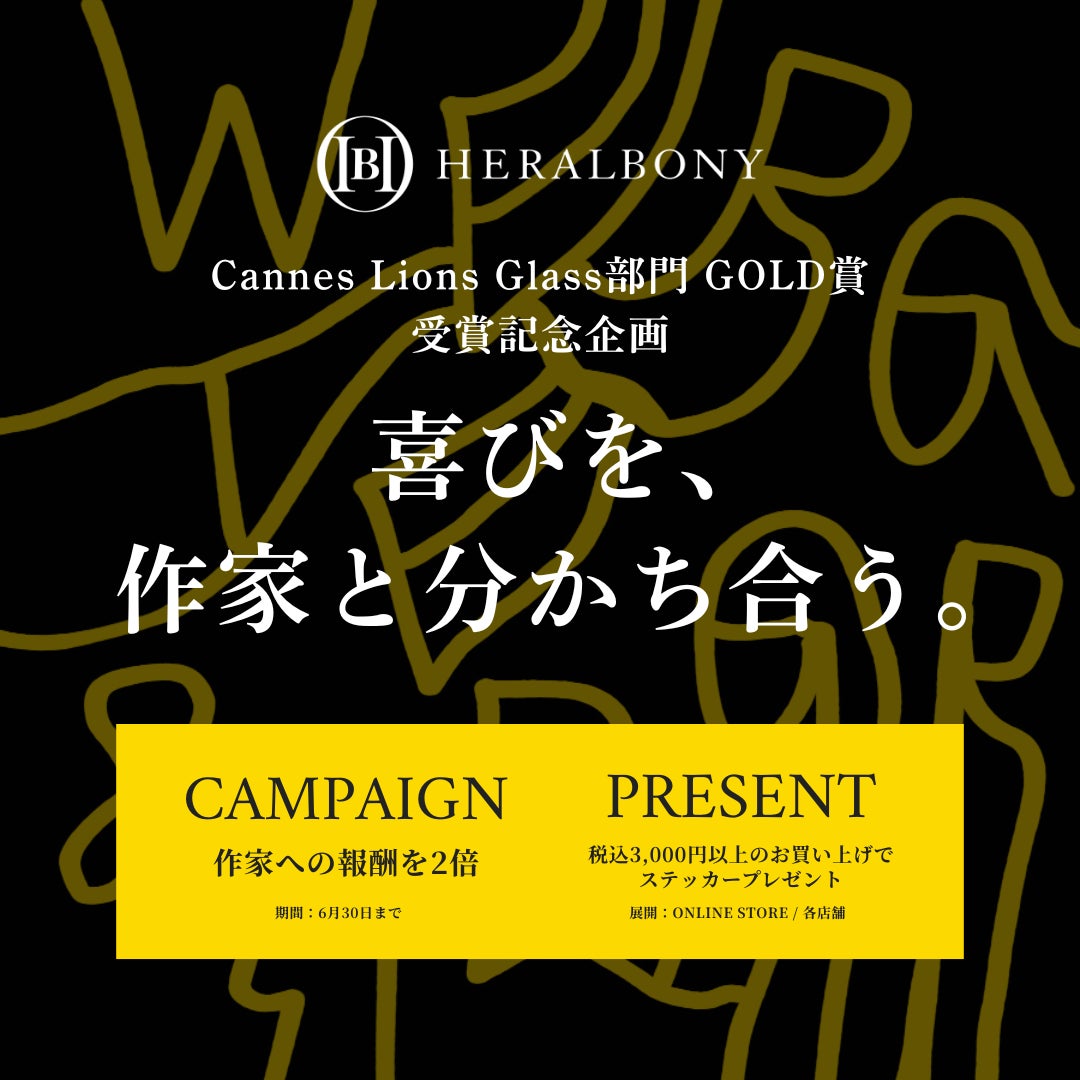 今回の受賞は、私たちだけのものではありません。創業から7年間、ビジネスパートナーとして共に未来をつくるため並走してきた150名を超える作家こそが、ヘラルボニーを世界最高峰の舞台へと導いてくれました。この受賞は、作家とともに歩んだ7年間の軌跡が、社会変革の力となりうると世界に認められた瞬間でもあります。今回の受賞を機に、私たちはあらためて「作家ファースト」の原点に立ち返り、この喜びをいち早く作家と分かち合いたいという思いから、期間中にヘラルボニーの実店舗および公式オンラインストアでご購入いただいた全商品について、すべてのアーティストへのロイヤリティ(作家報酬)を通常の2倍でお渡しすることを決定しました。