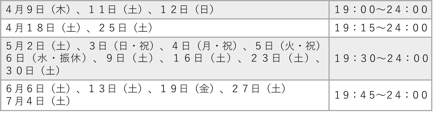 土・日・祝 9:00~21:30