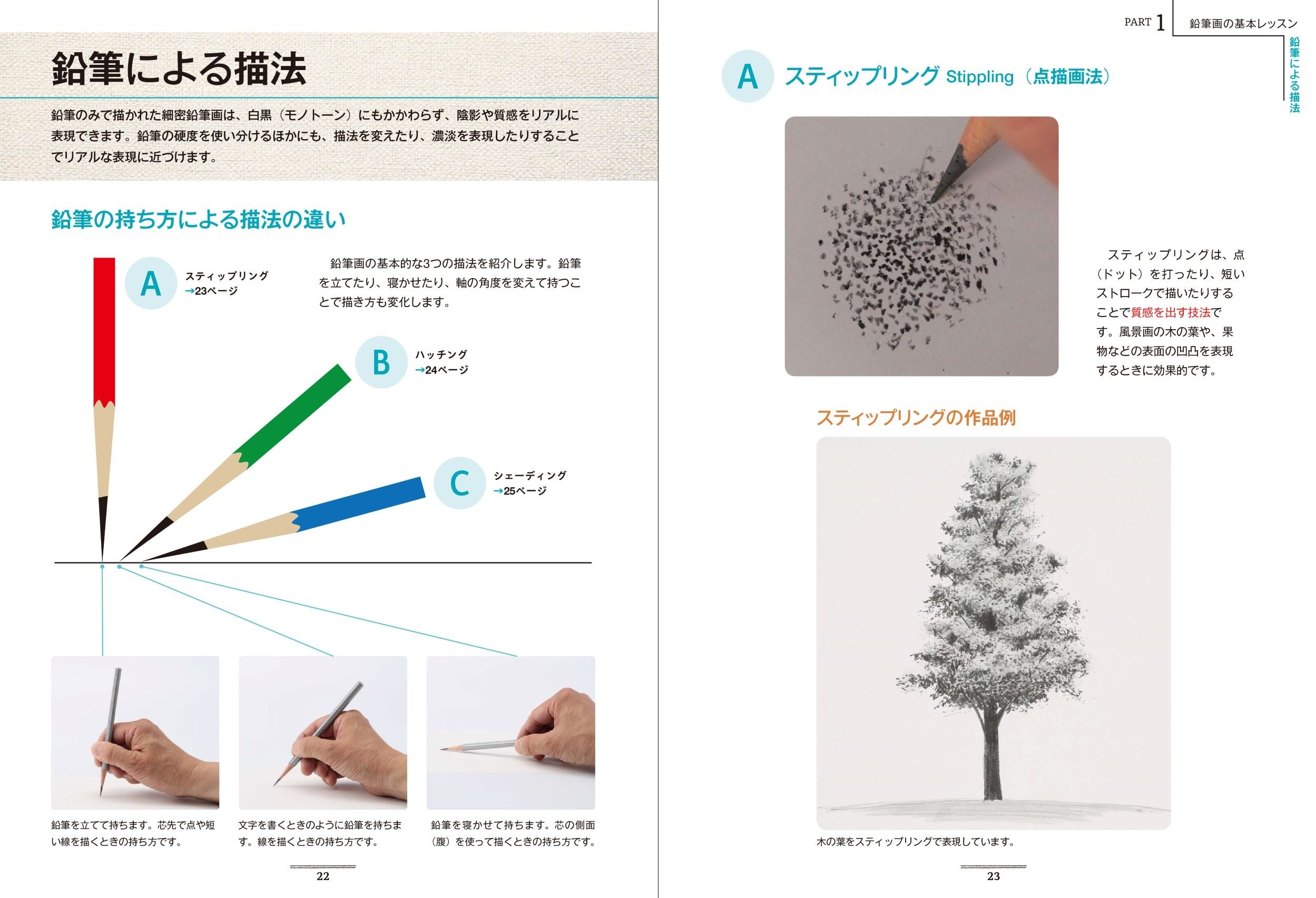 鉛筆だけで本物そっくりな緻密でリアルな絵を描く方法を、やさしくていねいに紹介・解説します。