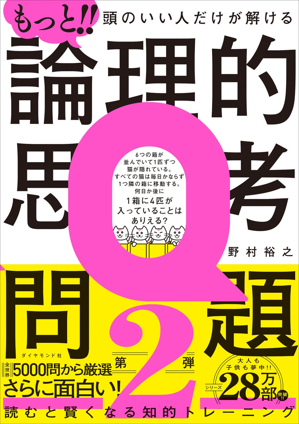 25万部を突破したベストセラー待望の続編、『もっと!!頭のいい人だけが解ける論理的思考問題』(野村裕之:著)が、本日11月12日に発売となります。