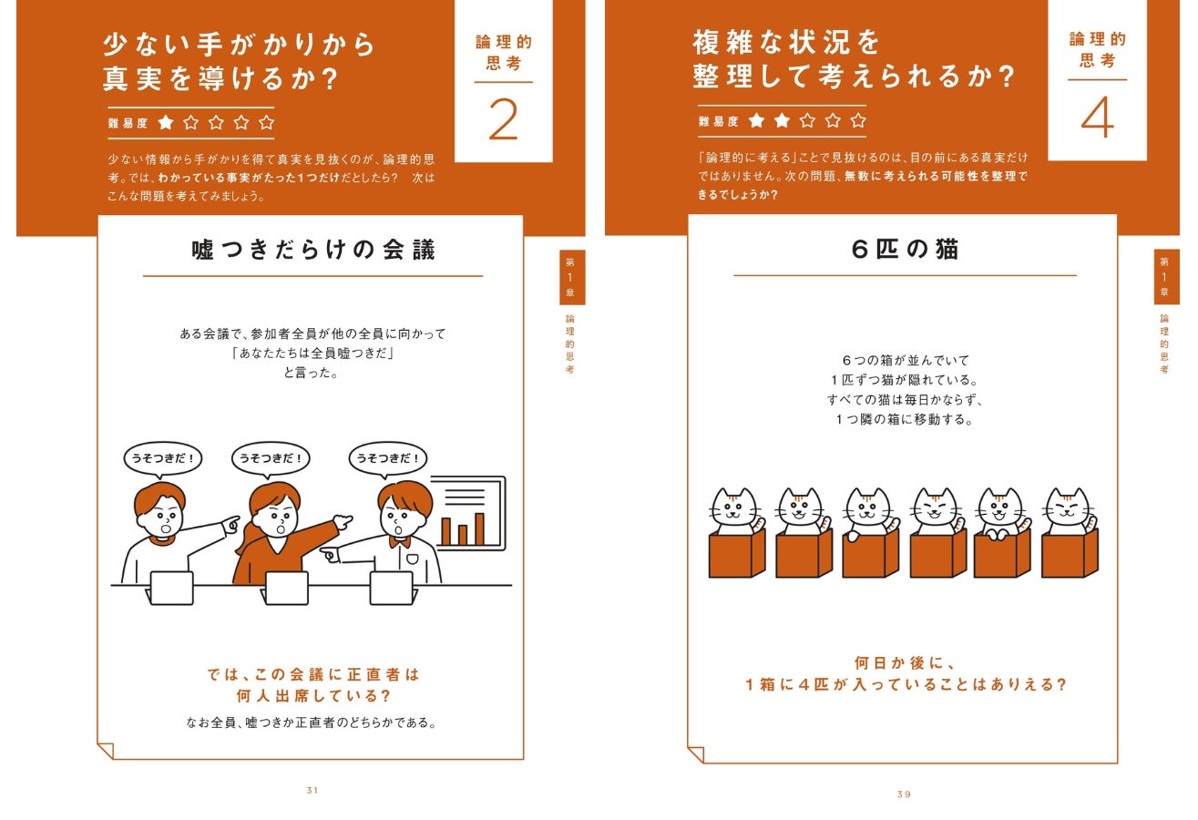「論理的思考問題」とは、特別な知識を必要とせず、問題文を読んで「ちゃんと考える」ことができれば、答えを導けるものです。地頭力を測る指標としてGoogle、Apple、Microsoftなどの世界的企業が採用試験で用いたり、超エリート校と呼ばれる学校の入試問題にも使われていたりします。本書は、ビジネスの現場で求められる論理的思考力を鍛えることができるのはもちろん、子供の柔軟な発想を伸ばす教材としても最適。「考えることの面白さ・楽しさ」を、全世代で共有できる知的トレーニング本です。
