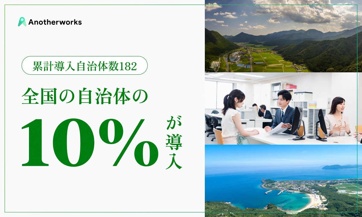 複業したい人と企業や自治体をマッチングする「複業クラウド」を展開する株式会社Another works(本社:東京都港区、代表取締役:大林 尚朝)は、2024年9月30日時点で、累計導入自治体数182を超え、全国の10%の自治体で導入されたことをお知らせいたします。今後も行政における複業人材登用を支援し、導入自治体や参画する複業人材すべての人の機会を最大化してまいります。そして地方創生、さらには日本経済の発展に寄与してまいります。