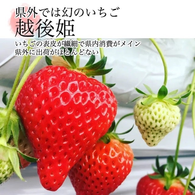 新潟県上越市で、いちごを育てています。県外出荷のほとんどない希少な品種「越後姫」を一粒一粒丁寧に梱包しお届けします。