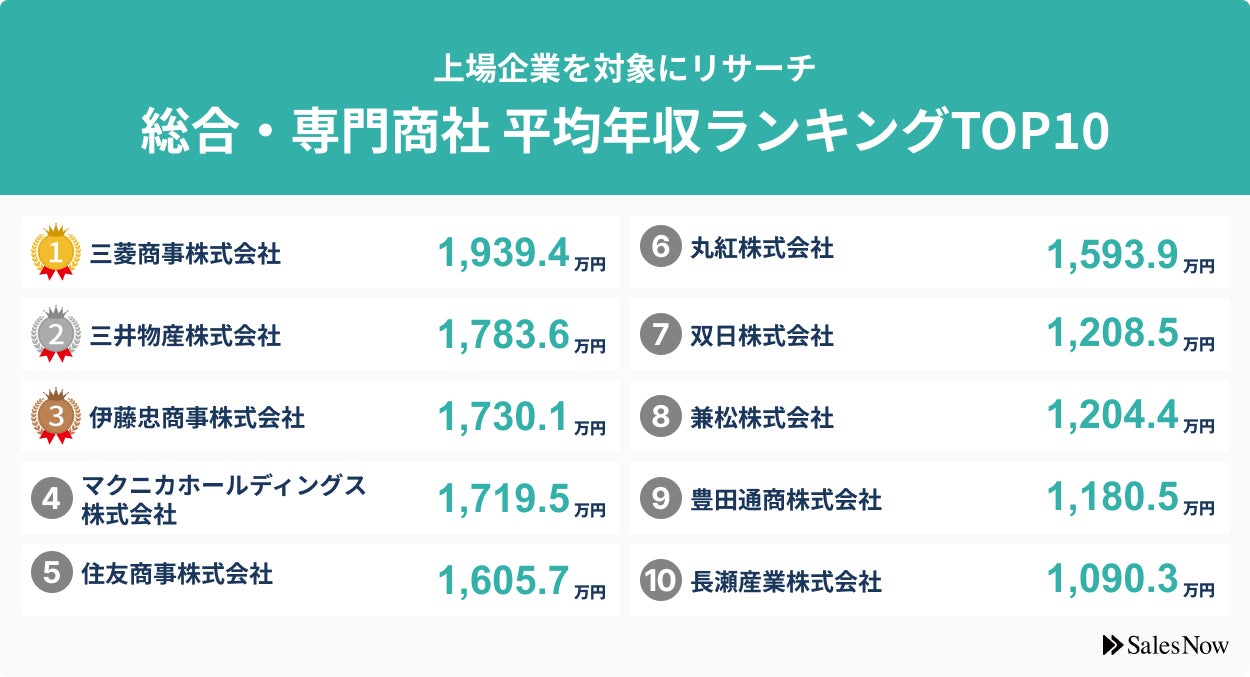 総合・専門商社業界、平均年収ランキングTOP10を発表!/SalesNow DBレポート