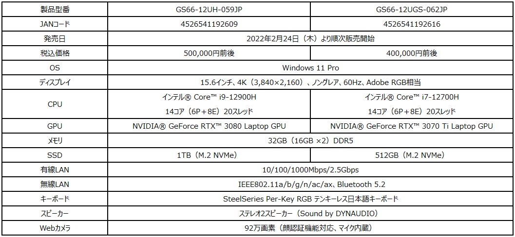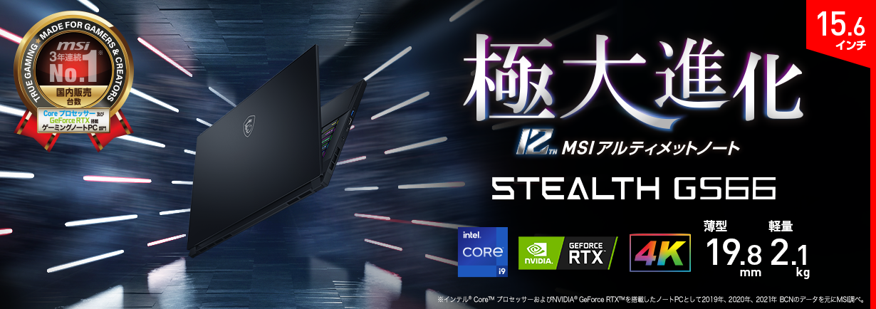 薄さ19.8mmの本体に「Core™ i9」と「GeForce RTX™ 3080」を搭載 薄型ゲーミングノートPCの最高峰「Stealth GS66 12U」シリーズ発売