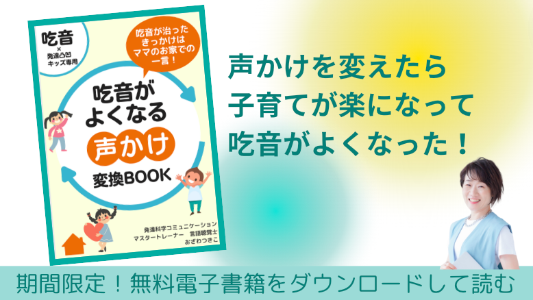 はじめまして。 ママが世界トップクラスの専門家になる!吃音改善Play Talkメソッド主催、発達科学コミュニケーションマスタートレーナーとして活動しています言語聴覚士のおざわつきこです。この度、普段のママの会話をちょっと変えるだけで、吃音×発達凸凹キッズの脳をポジティブ脳に発達させ、吃音をよくする『\吃音が治ったきっかけはママのお家での一言!/「吃音がよくなる声かけ変換Book」』と題した小冊子をリリースいたしました。