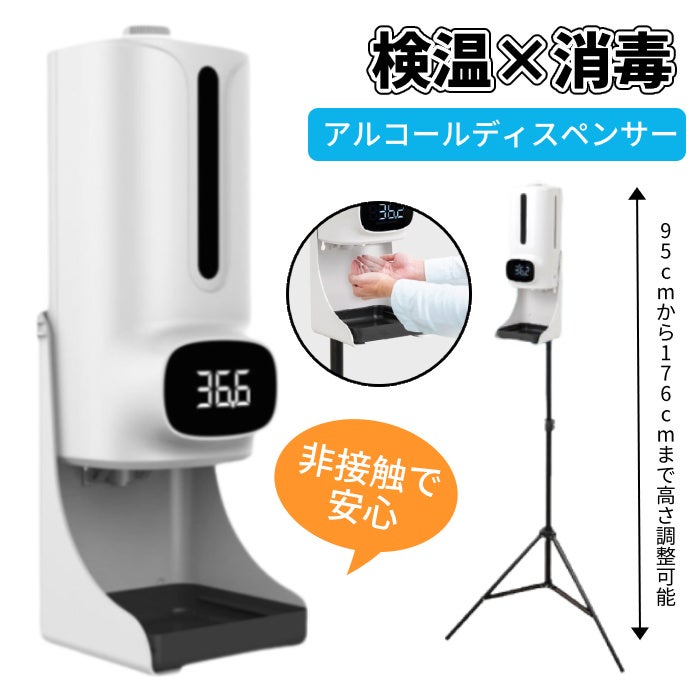 非接触で安心!「三脚つき アルコールディスペンサー 検温付き 1000ml」が販売開始します。