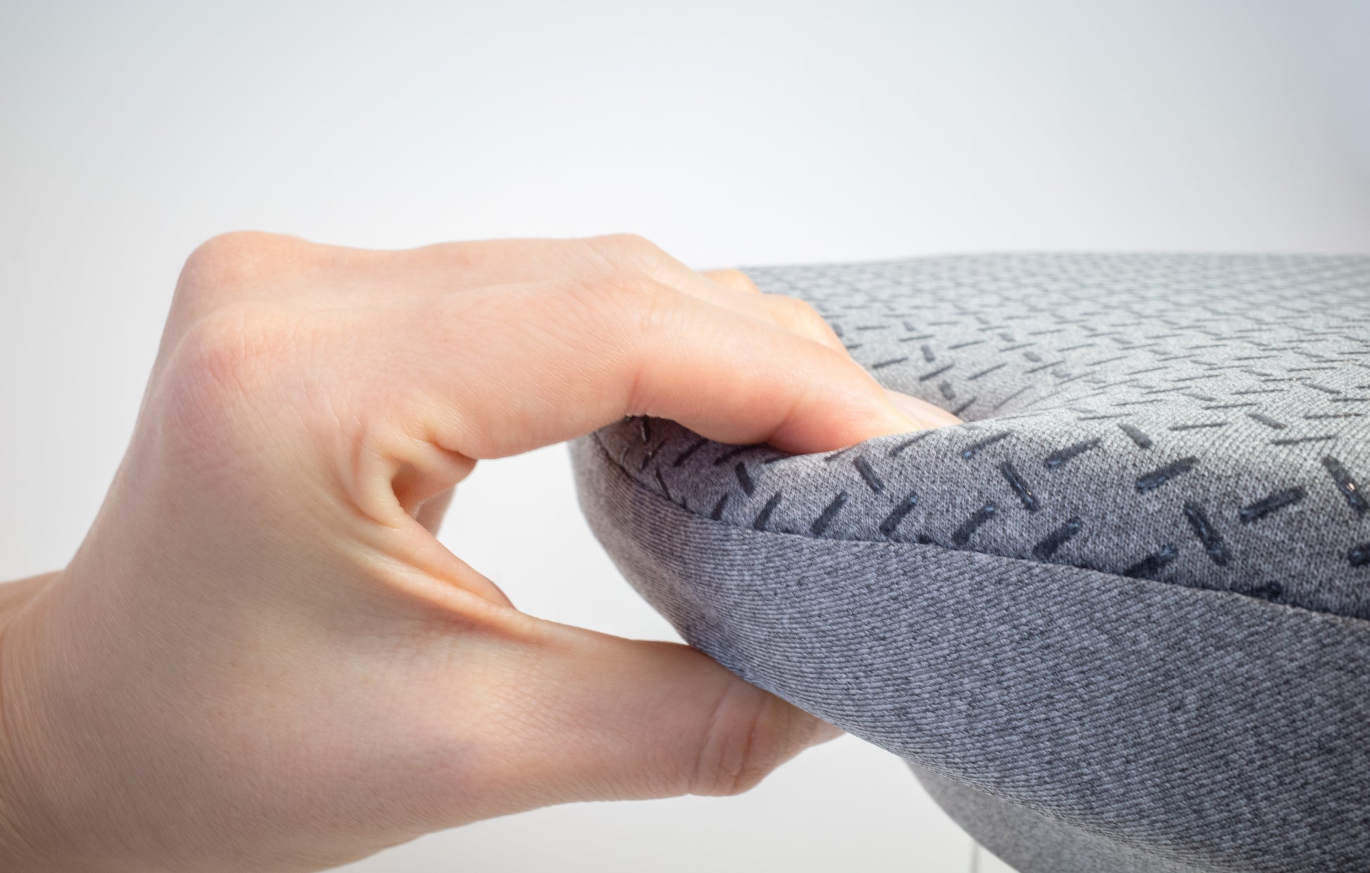 お尻が底につきにくいよう、厚さ4cmの圧縮チップウレタンを内蔵しています。通常のウレタンフォームに比べて支える力が強いため、沈み込みにくく、長期使用してもへたりにくいのが特徴です。また、通気性が良く、ムレにくいです。