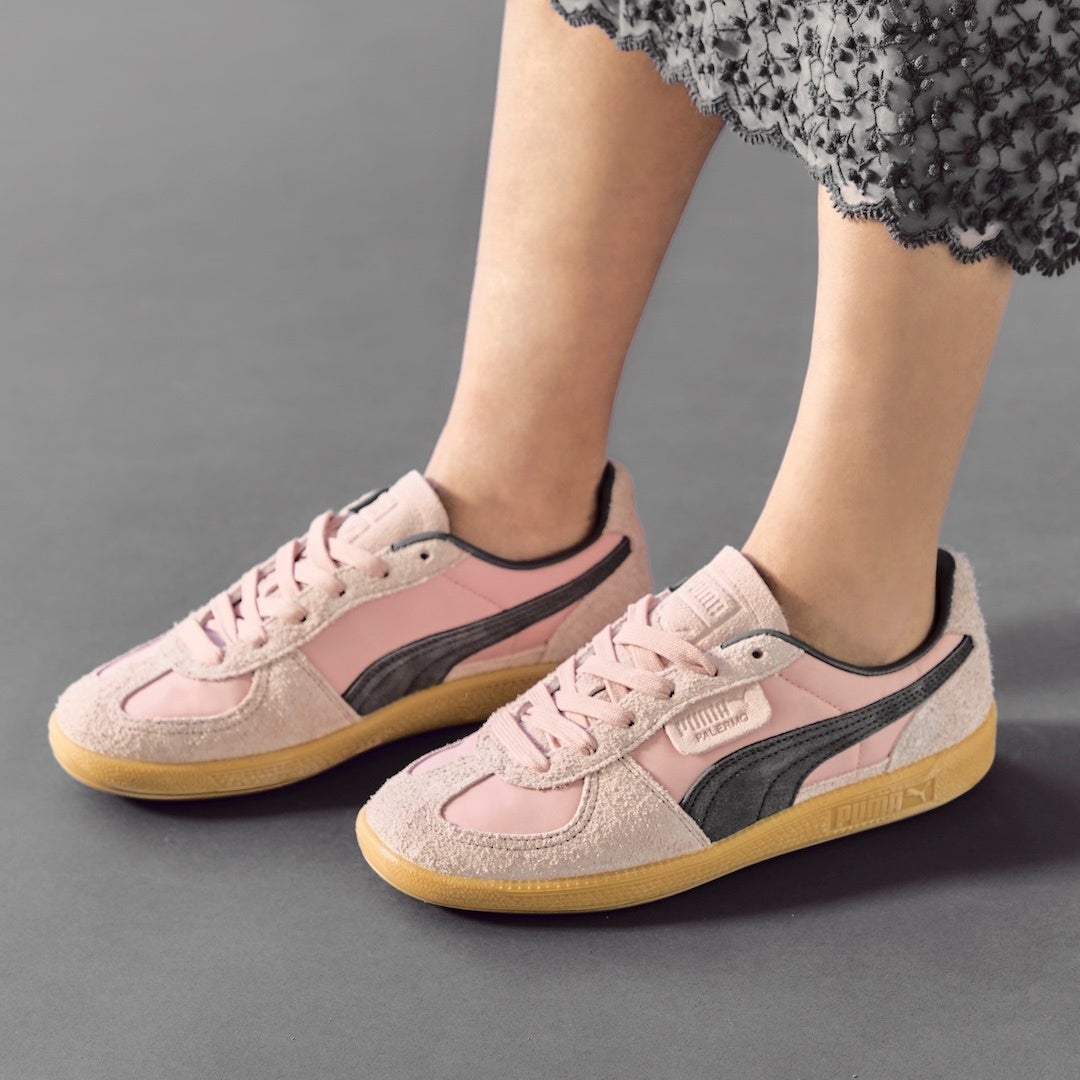 そして今回の第8弾では、PUMAの名作モデル「PALERMO」をベースに、スタイリストの百々千晴さん(どど ちはる)が45周年仕様にデザインした特別モデルが2カラー登場します。大人らしいスモーキーなピンクとブラウンがスタイリングを引き立て、部分的に採用した毛足の長いヘアリースウェードもこれからの季節になじむデザインに仕上がっています。