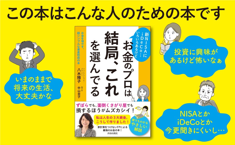 青春出版社(東京都・新宿区)は『新NISAにiDeCo…いろいろあるけどお金のプロは結局、これを選んでる』(八木陽子/著、中山圭子/聞き手)を12月20日に発売いたしました。