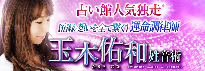 指名は殺到、口コミ高評価、占い館で絶大な人気を誇る鑑定士「玉木佑和」。優れたリーディング能力で名前の「音」の響きから、直接あなたやあの人の運命や心の共鳴を読み取り、2人の宿縁を解き明かします。秘密も運命が変わる瞬間もピタリと当てる鑑定をぜひご体感ください。