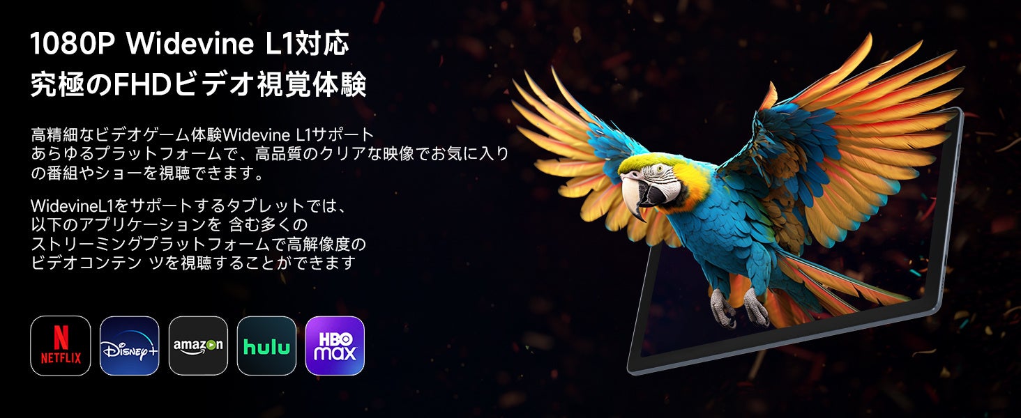 MaxPad I11Plus タブレットは2000*1200IPS の10.4インチのディスプレイを採用し、従来より、画像はもっと鮮やかで表示します。2K 10.4インチタブレットはincellスクリーン処理技術を採用しており、良い画質を実現できます。10.4インチタブレットはWidevineL1をサポートしており、YouTube ビデオ、Disney+などが高画質で視聴可能であることを示しています。
