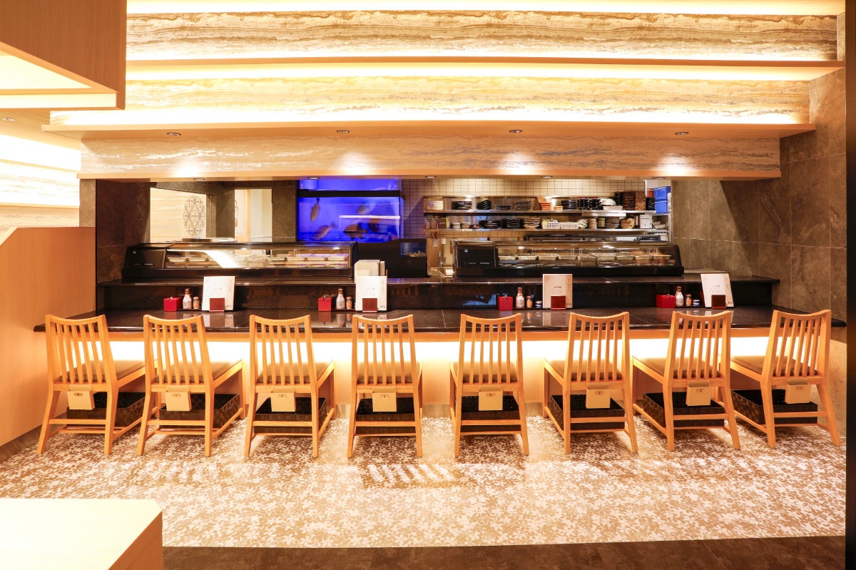 にぎり⻑次郎は、廻転寿司店でありながらお客様の⽬の前で板前が寿司をにぎり、お客様とのふれあいを⼤切にしています。「活⿂廻転寿司にぎり⻑次郎」は郊外や住宅地に、姉妹店の「廻転寿司CHOJIRO京都」は主に商業施設や繁華街に⽴地し、セットメニューやお酒の品ぞろえなどを⼯夫することで、それぞれの地域でお客様に愛される店づくりを⾏っています。