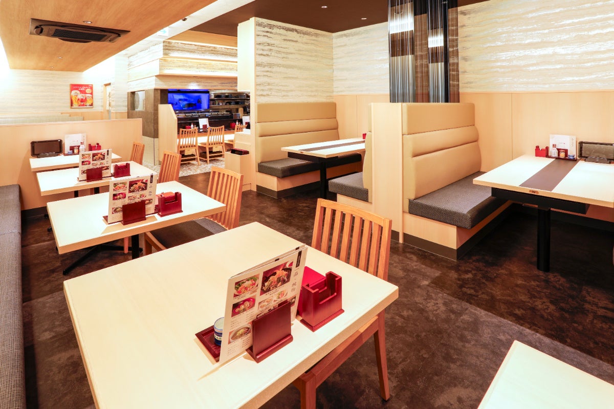 テーブル席はお履き物を脱がずに着座できるベンチシートタイプに変更。ゆったりと設計した6名掛けのお席で、ご家族のだんらんにもおすすめです。