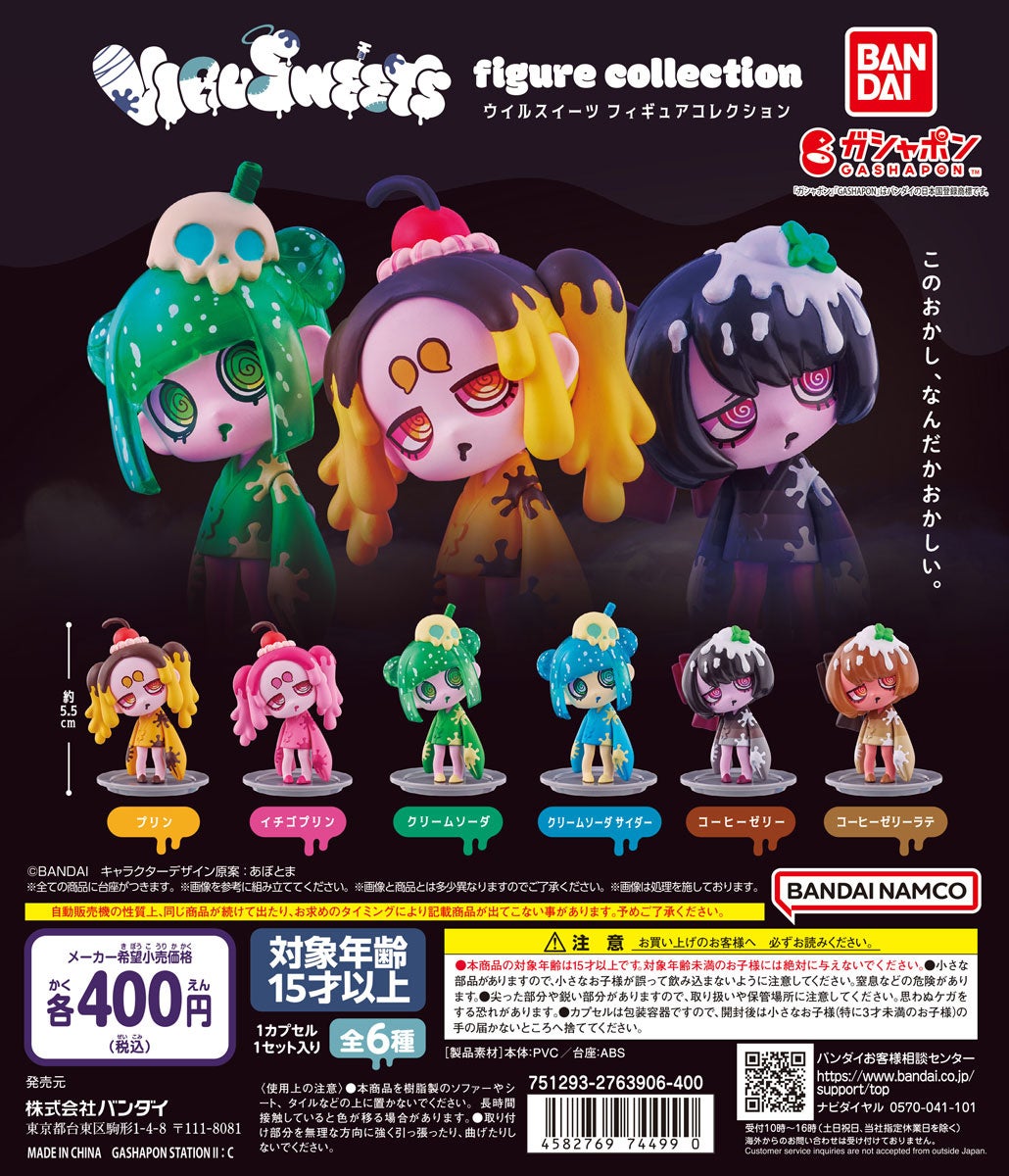 株式会社バンダイ ベンダー事業部(本社:東京都台東区)は、ガシャポンⓇの新たなオリジナルシリーズとして「VIRUSWEETS figure collection」(1回 400 円・税10%込、全6種)を2024年12月第4週から順次、全国のガシャポンバンダイオフィシャルショップ、玩具売り場・量販店・家電店などに設置されたガシャポン自販機シリーズにて発売いたします。
