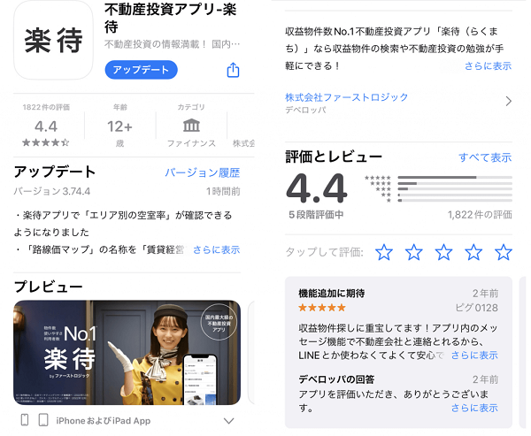できる「楽待アプリ」。2018年のリリースから多くの方にご愛顧いただき、2023年4月に40万ダウンロードを突破しました。
