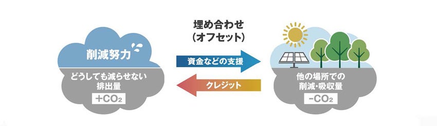ホテルや旅館などに宿泊することで生じたCO₂排出相当量を国の認定制度「Jクレジット」を使用して、カーボン・オフセットする内容です。カーボン・オフセットとは、日常生活や経済活動において避けることができないCO₂等の温室効果ガスの排出について、できるだけ排出量が減るように努力し、排出される温室効果ガスについては、排出量に見合った削減活動に投資(Jクレジット(カーボンクレジット)を購入)することにより、温室効果ガスを埋め合わせるという考え方です。