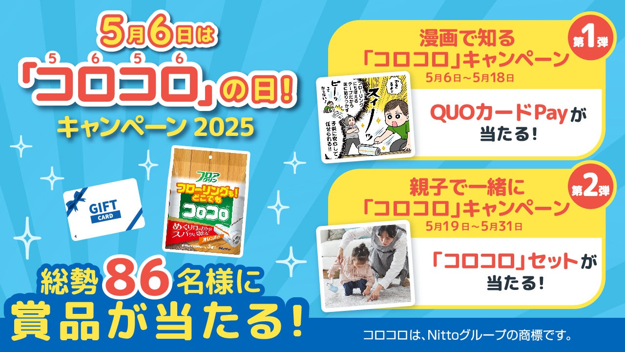 株式会社ニトムズ(本社:東京都品川区、代表取締役社長:右近敦嗣)は、5月6日の「コロコロの日」を記念して、「5月6日はコロコロの日!キャンペーン 2025」をX(旧:Twitter)にて実施します。本キャンペーンでは2つの施策を2025年5月6日(火)より順次実施します。