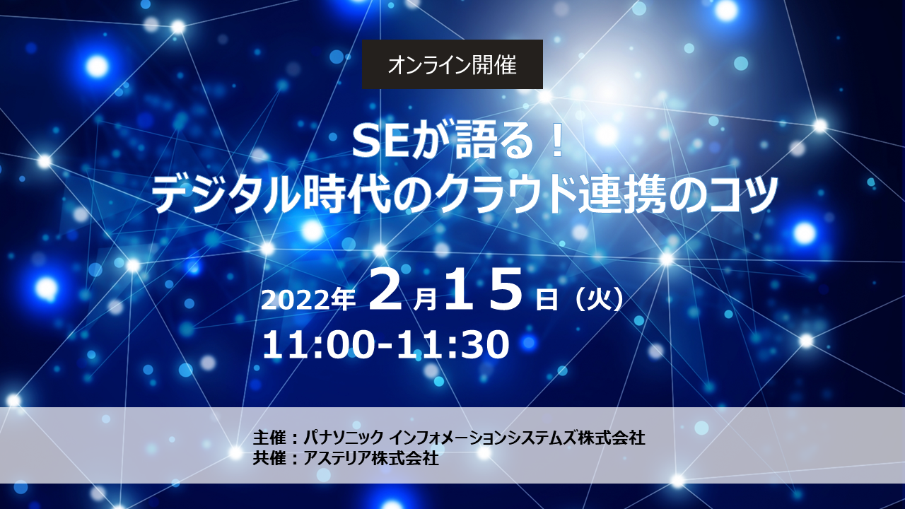 パナソニック インフォメーションシステムズ株式会社は、2022年2月25日(火)クラウド連携にフォーカスしたオンラインセミナーを開催します。