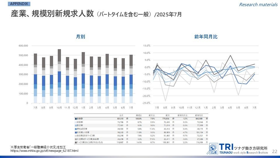 株式会社ツナググループ・ホールディングス(本社:東京都中央区、代表取締役社長:米田 光宏)を母体とする、多様な働き方の調査研究機関「ツナグ働き方研究所(拠点:東京都港区、所長:大野 博司)」は、官公庁などが発表する労働市場関連のデータをキュレーションしつつ、分かりやすくまとめた「労働市場データレポート」を毎月発表しています。今回は8月下旬に発表された最新データをもとに2025年7月度のレポートについて、とりまとめましたのでご報告いたします。