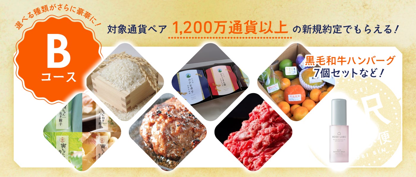▼Bコース:1,200万通貨以上のお取引をされたお客さまが対象