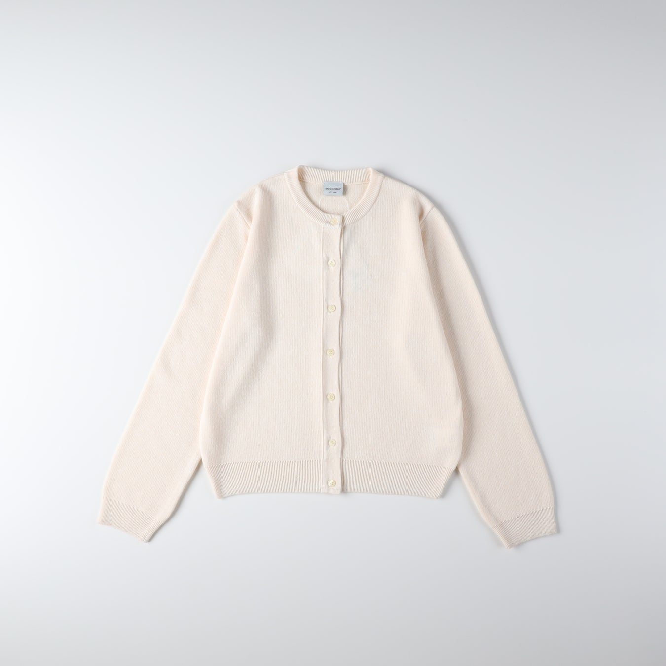 従来のニット製品の課題である「ほつれ」や「型崩れ」を克服するため、目立たない裏糸にポリエステルを採用しました。この生地の工夫により、適度な厚みと張り感を持たせながらも、軽く仕上げることを可能にしました。このタフな品質こそが、ほつれにくく日常で気兼ねなく扱える、確かな安心感を得られます。
