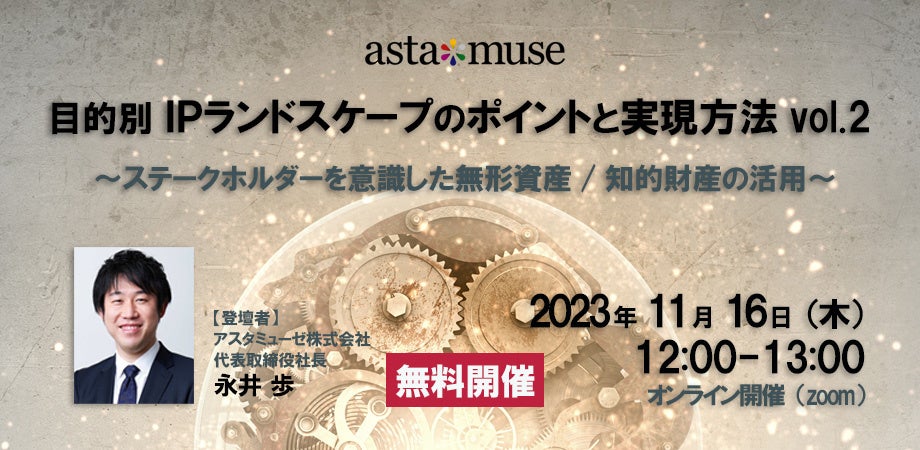 人気ウェビナーの続編「目的別 IPランドスケープのポイントと実現方法 vol.2 ~ステークホルダーを意識した無形資産/知的財産の活用~」を5か月ぶりに再開催
