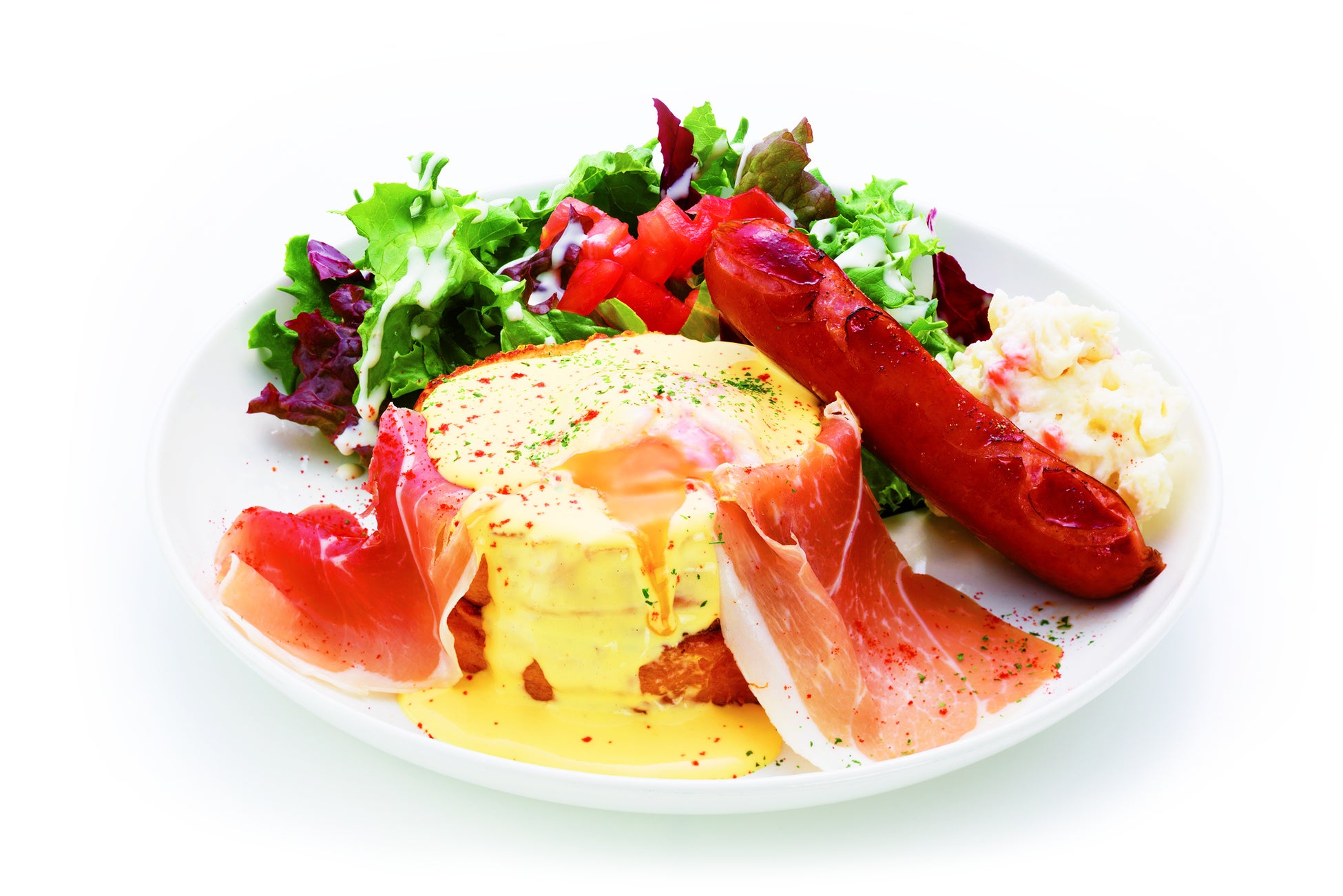 トロッと半熟卵を割ってフレンチトーストや生ハムと絡めて食べる、Ivorish オープン当初から定番の「エッグベネディクト」。