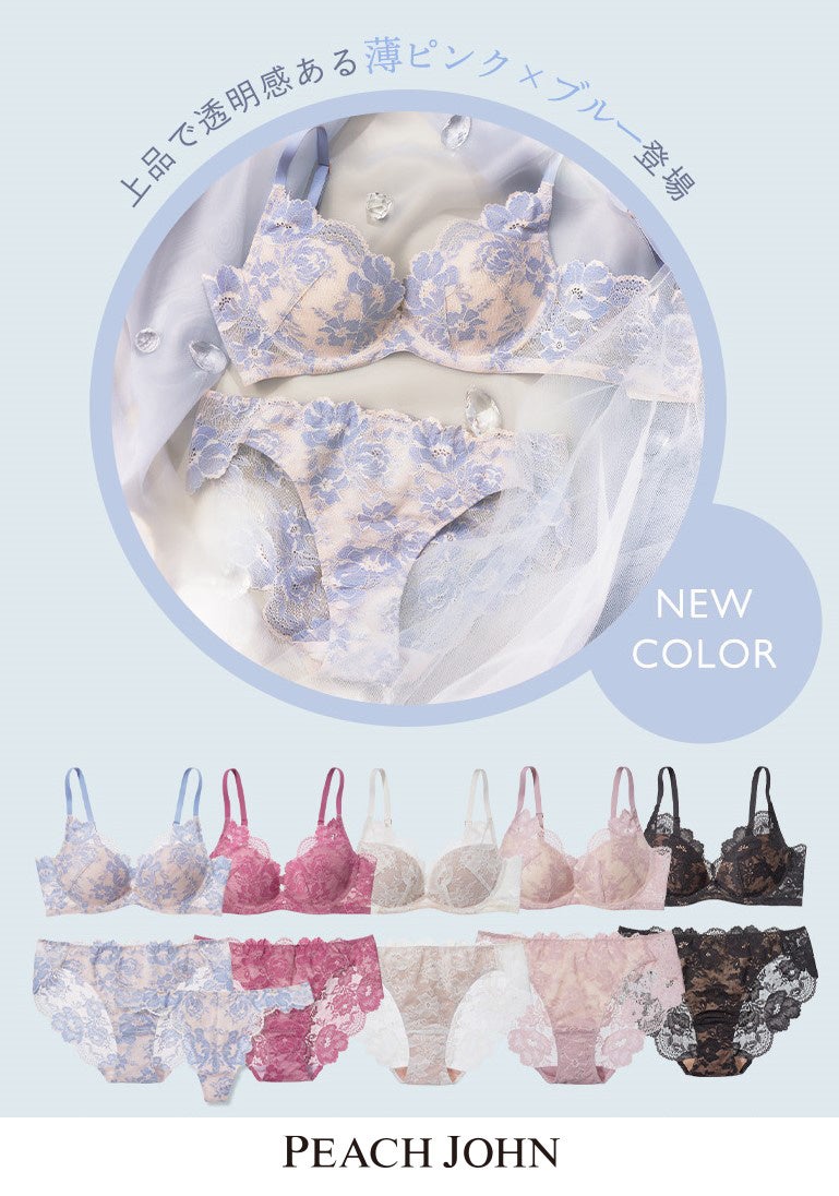 株式会社ピーチ・ジョン(本社:東京都港区/代表取締役社長:杤尾 学)は、2022年1月5日(水)に、ふっくらまるみバストを作る適度なメイク力、繊細でフェミニンなデザイン、洗濯機で丸洗いできるお手入れのしやすさで大ヒット中のミラクルブラの新色を発売しました。上品で透明感ある薄ピンクベースにブルーのお花がさわやかな配色の「ピンクBL」1色が新色追加。