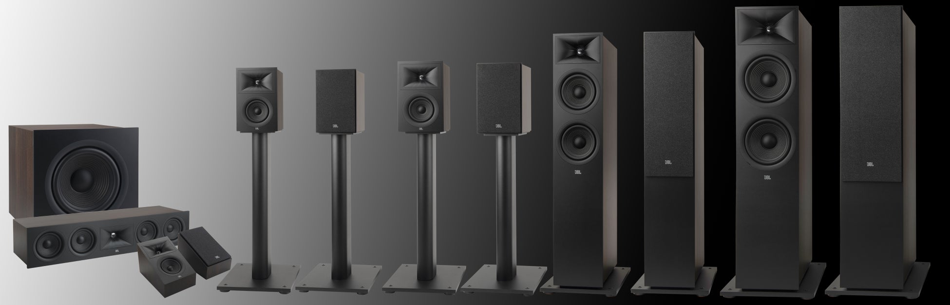 初代シリーズ同様、フロアスタンディングスピーカー(STAGE 280F、STAGE 260F)からコンパクトなブックシェルフ型スピーカー(STAGE 250B、STAGE 240B)、センタースピーカー(STAGE 245C)、サブウーファー(STAGE 200P)という豊富なラインナップに加え、新たに天井にスピーカーを設置することが困難な場合でもフロントスピーカーの上に置くだけで、天井反射を利用してトップスピーカーを設置した時のような高さ方向の音を再現できる「Dolby AtmosⓇ」イネーブルド・ハイトスピーカー(STAGE 240H)をご用意。昨今、マルチチャンネル再生で主流となりつつあるイマーシブサウンド(立体音響)をJBLサウンドで手軽に実現することができます。また、STAGE 240H はお好みや設置環境に合わせてスイッチを切り替えることにより、天井反射を利用しない通常のサラウンドやハイト用壁掛けスピーカーとしても使用可能です。