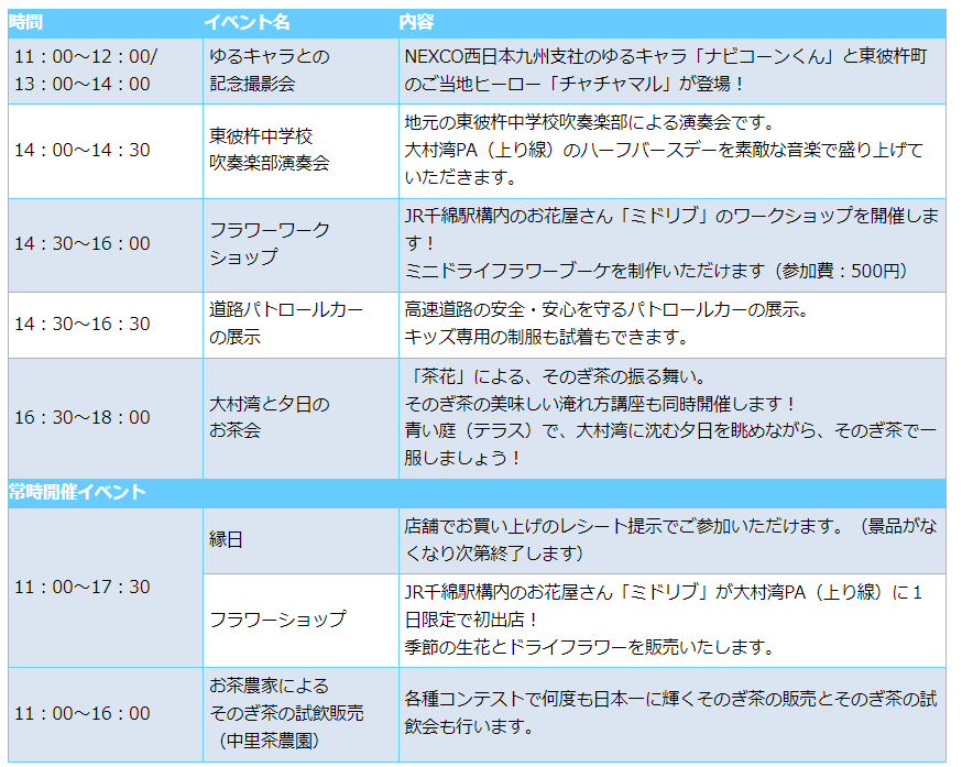 E34 長崎自動車道 大村湾PA(上り線) 10月19日(土曜)にハーフバースデーイベントを開催します!