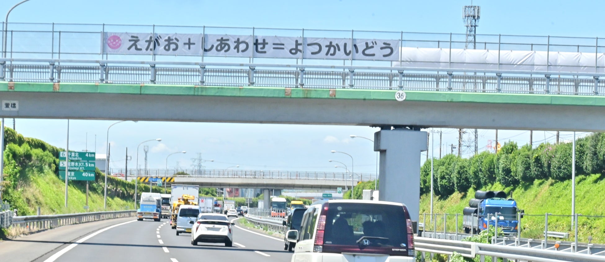 四街道市では、東関東自動車道を利用する方に本市をPRするため、高速道路を跨ぐ陸橋にPR横断幕を掲出しています。