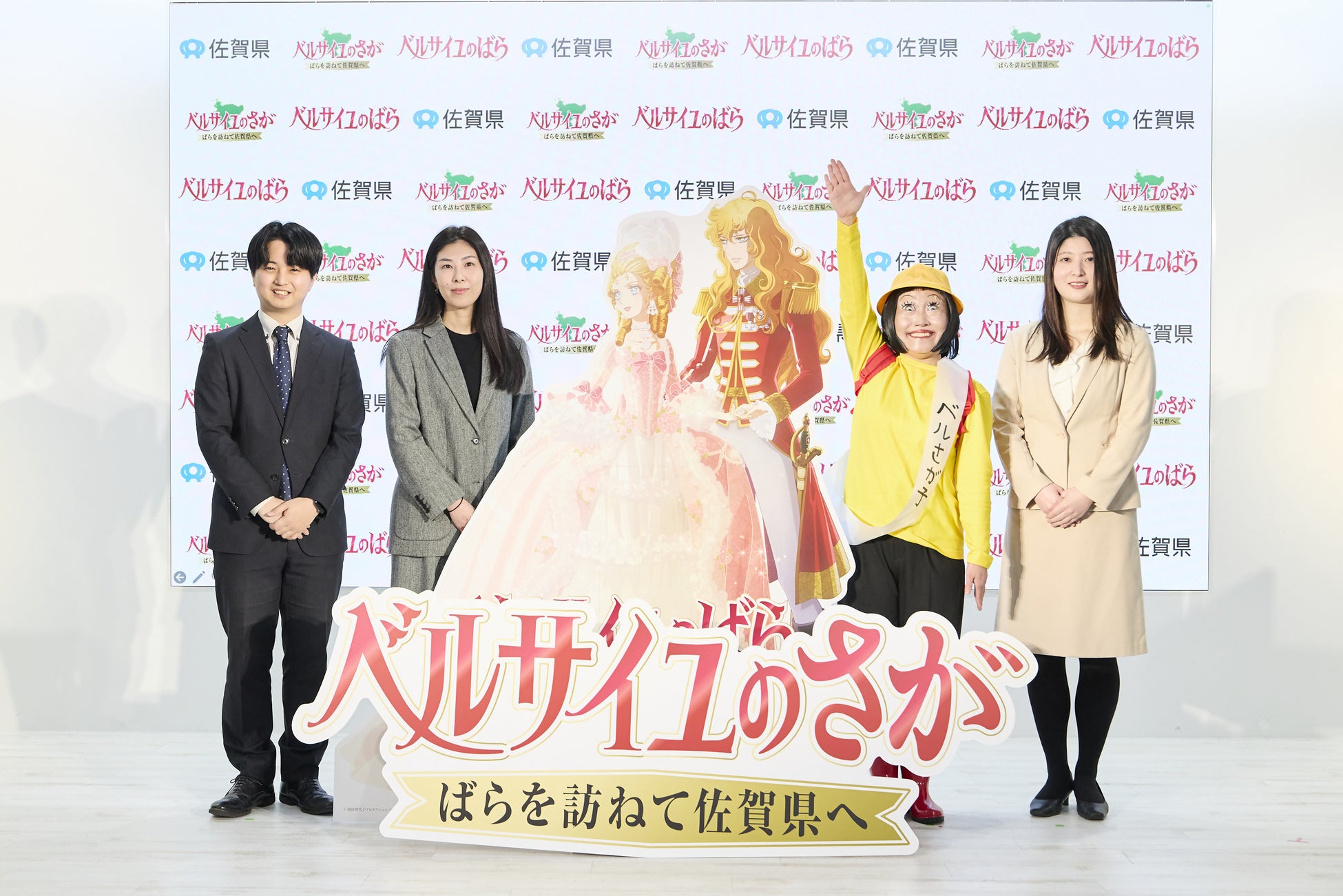 佐賀県は、県内のモノ・コトを起点に、企業やコンテンツなどとのコラボレーションにより “新しい驚き”をつくる情報発信プロジェクト「サガプライズ!」の一環として、1月31日(金曜日)に上映開始となる劇場アニメ『ベルサイユのばら(ベルばら)』とのコラボプロジェクト「ベルサイユのさがーばらを訪ねて佐賀県へー(ベルさが)」を1月28日(火曜日)より開始しました。これを記念したプロジェクト記者発表会を、同日都内で開催しました。