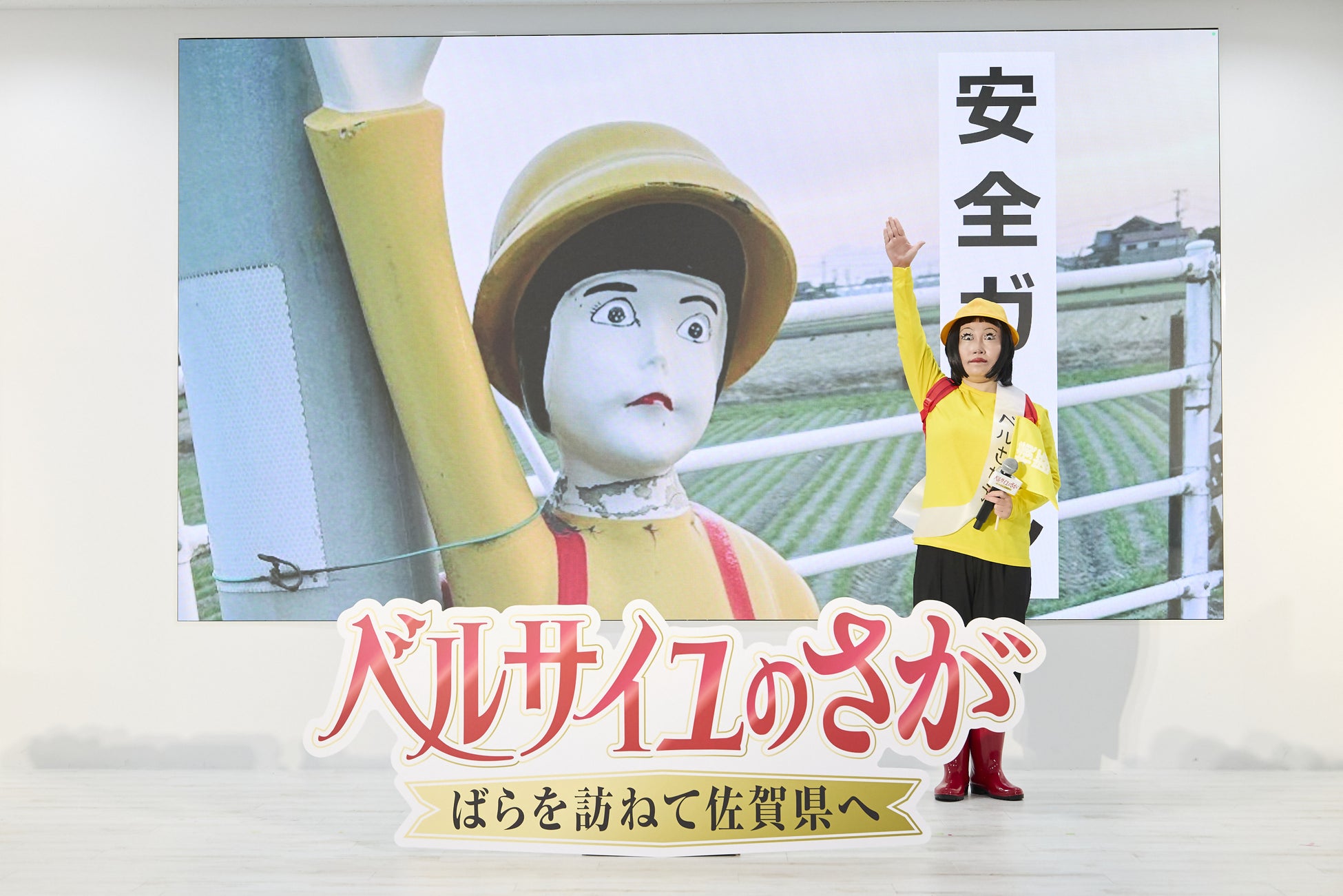 佐賀の珍百景!?「安全ガール」に変身したキンタロー。さんが「ばら」を求めて佐賀県クイズ「ベルさが検定」に挑戦!「ベルサイユのさがーばらを訪ねて佐賀県へー」プロジェクト記者発表会を開催しました