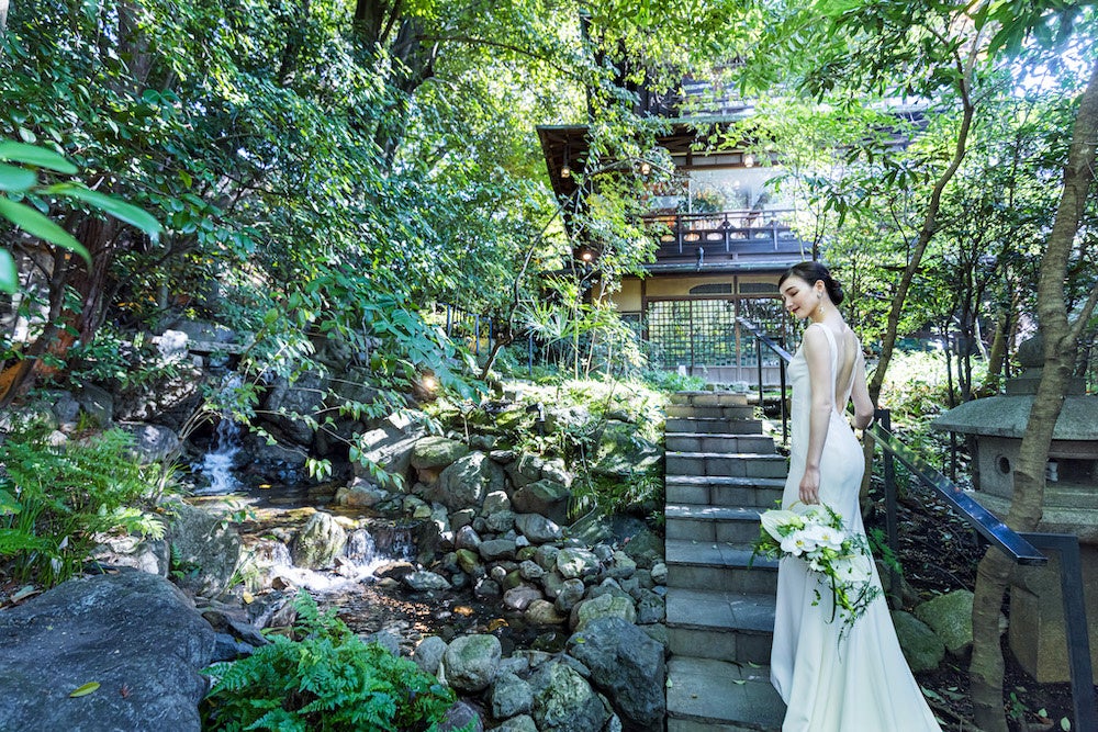 その一つであるアカガネリゾートは、京都東山にあり、銅の加工メーカーとして250年続く老舗企業オーナーの邸宅を修復・再生した、レストランとウエディングの会場です。その敷地は約700坪と広大で、大正時代に贅を尽くして建てられた歴史的な邸宅と緑深い庭は、まるで日常の喧騒を離れたプライベートリゾートのよう。そんな隠れ家のようなロケーションに恵まれたダイニングでは、京の食材を贅沢に使用したシェフこだわりのフレンチをご提供しています。