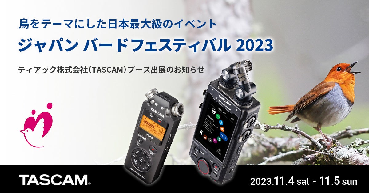 ティアック株式会社は、TASCAM(タスカム)ブランドにおいて2023年11月4日(土)~11月5日(日)に千葉県我孫子市手賀沼周辺にて開催されます「ジャパンバードフェスティバル2023」に出展します。