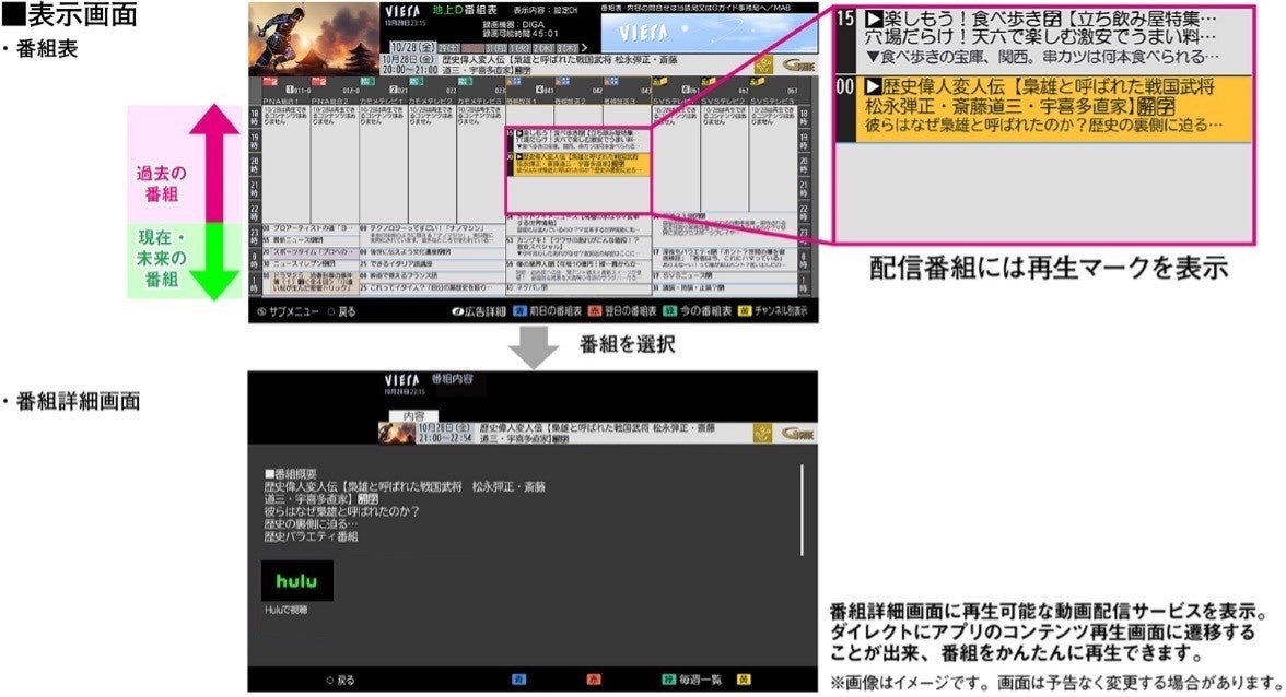 地上波で見逃した作品が更に観やすく。テレビの番組表から直接Huluで配信中のコンテンツを再生できるOTTリンクに対応