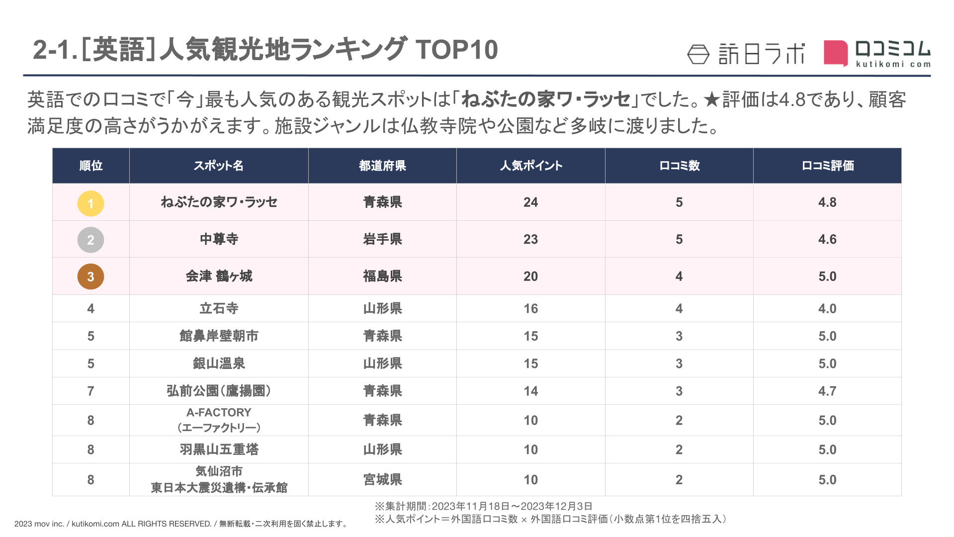 【独自調査】インバウンド人気観光地ランキング東北編:最新の訪日客の支持を集めたスポットTOP30を発表 #インバウンドMEO