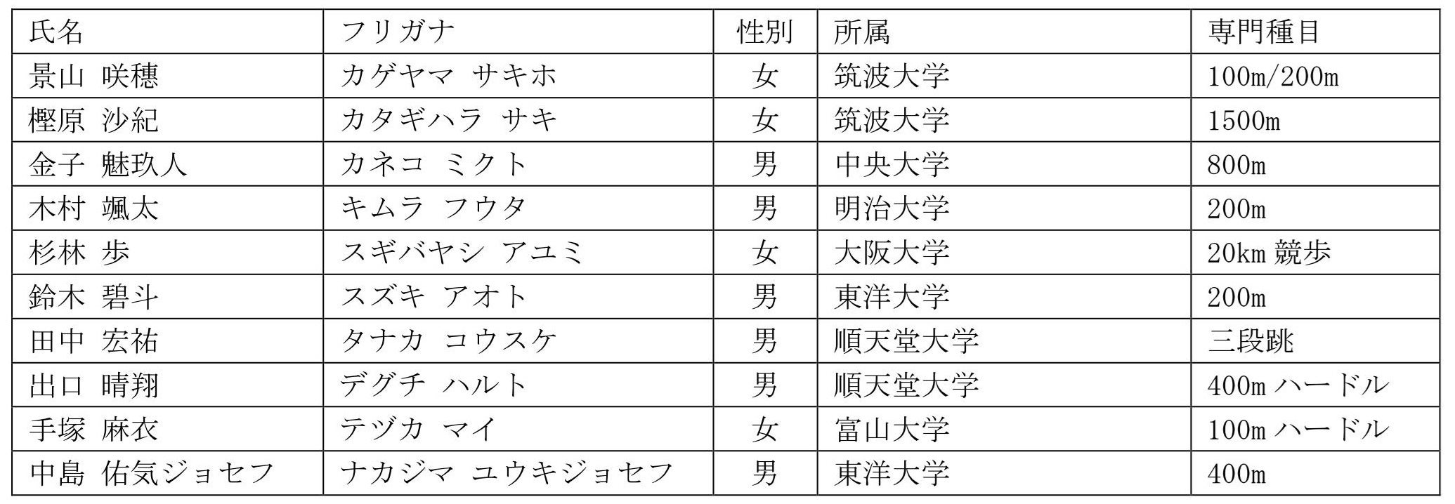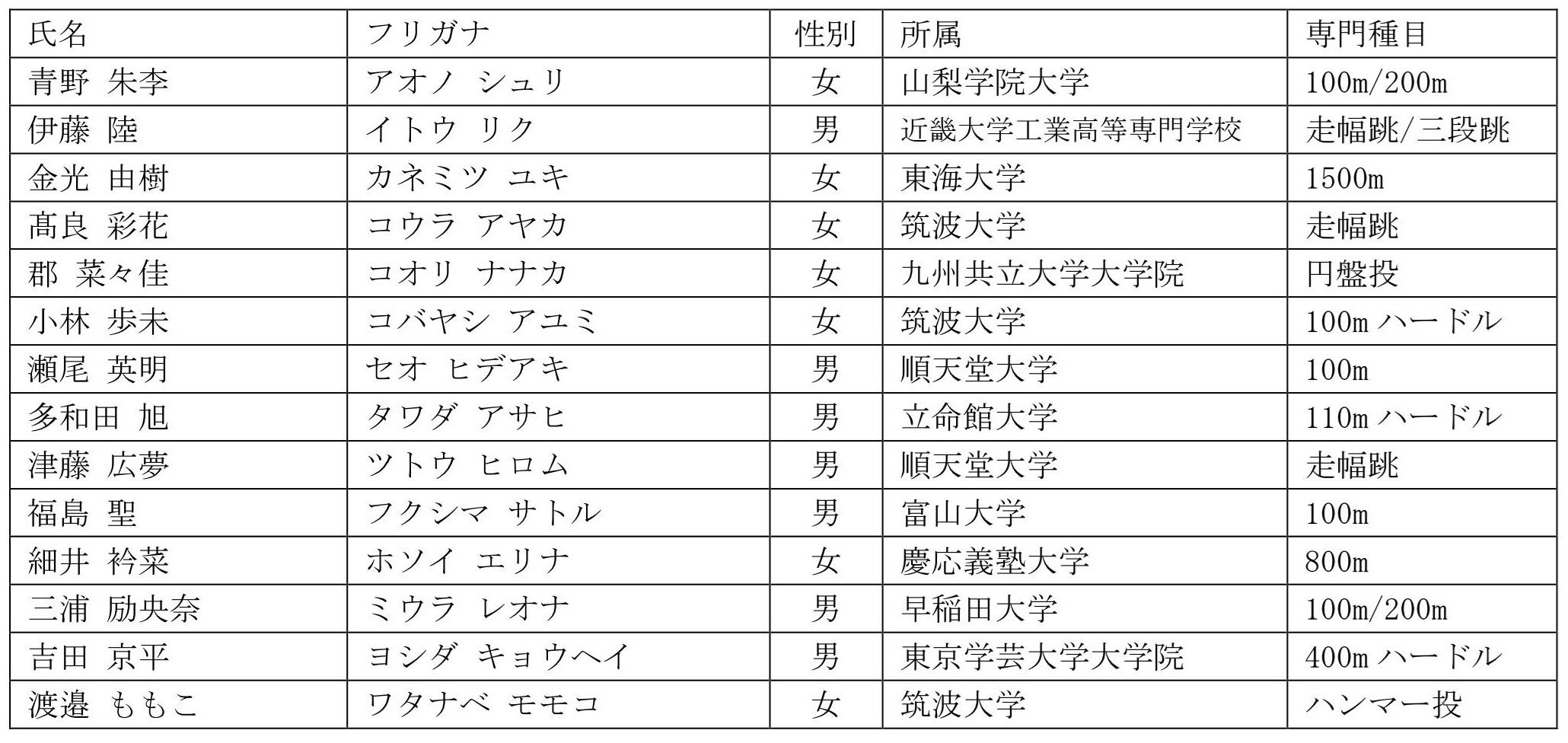 このプログラムを通じ、トップアスリートとしての競技力向上はもちろんのこと、競技以外のステージでも活躍する人材を輩出し、陸上から生まれるリーダーの方々が、これからのスポーツ界や社会をより輝くものにしていただくことを目指しており、この目的に対し賛同し、強い参加意欲のある競技者を募集いたします。