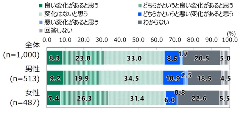 ※良い変化があると思うは「良い変化があると思う」「どちらかというと良い変化があると思う」の合計、悪い変化があると思うは「どちらかというと悪い変化があると思う」「悪い変化があると思う」の合計