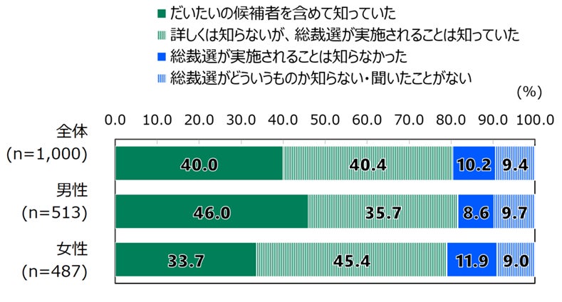 日本財団(東京都港区 会長 笹川陽平)は立憲民主党代表選、自民党総裁選を前にした9月20、21の両日、「総裁選/政治関心」をテーマに65回目の18歳意識調査を行い、政治への関心の変化や総選挙での投票意向、今後の政治・新総理への期待などを聞きました。立憲民主党代表選の実施に関しては全体の6割、自民党総裁選に関しては同8割が「知っていた」と回答、両選挙を通じて約半数(48%)が「政治への関心が高まった」とし、総選挙が行われた場合、半数超が「行くと思う」と答えています。