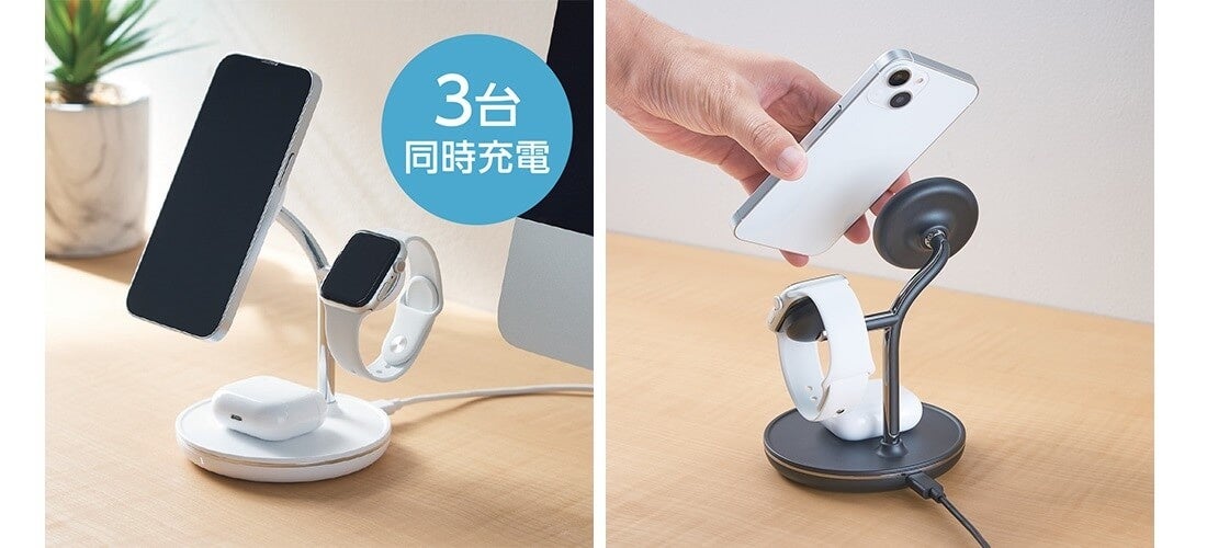 iPhone/AirPods/Apple Watch 3台同時充電!置くだけで充電できる3in1タイプのマグネット内蔵ワイヤレス充電器を新発売