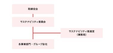 サステナビリティ委員会の運営事務局として「サステナビリティ推進室」があり、経営理念に基づくサステナビリティ施策の推進、事業部門との連携、情報収集などの活動を行っています。