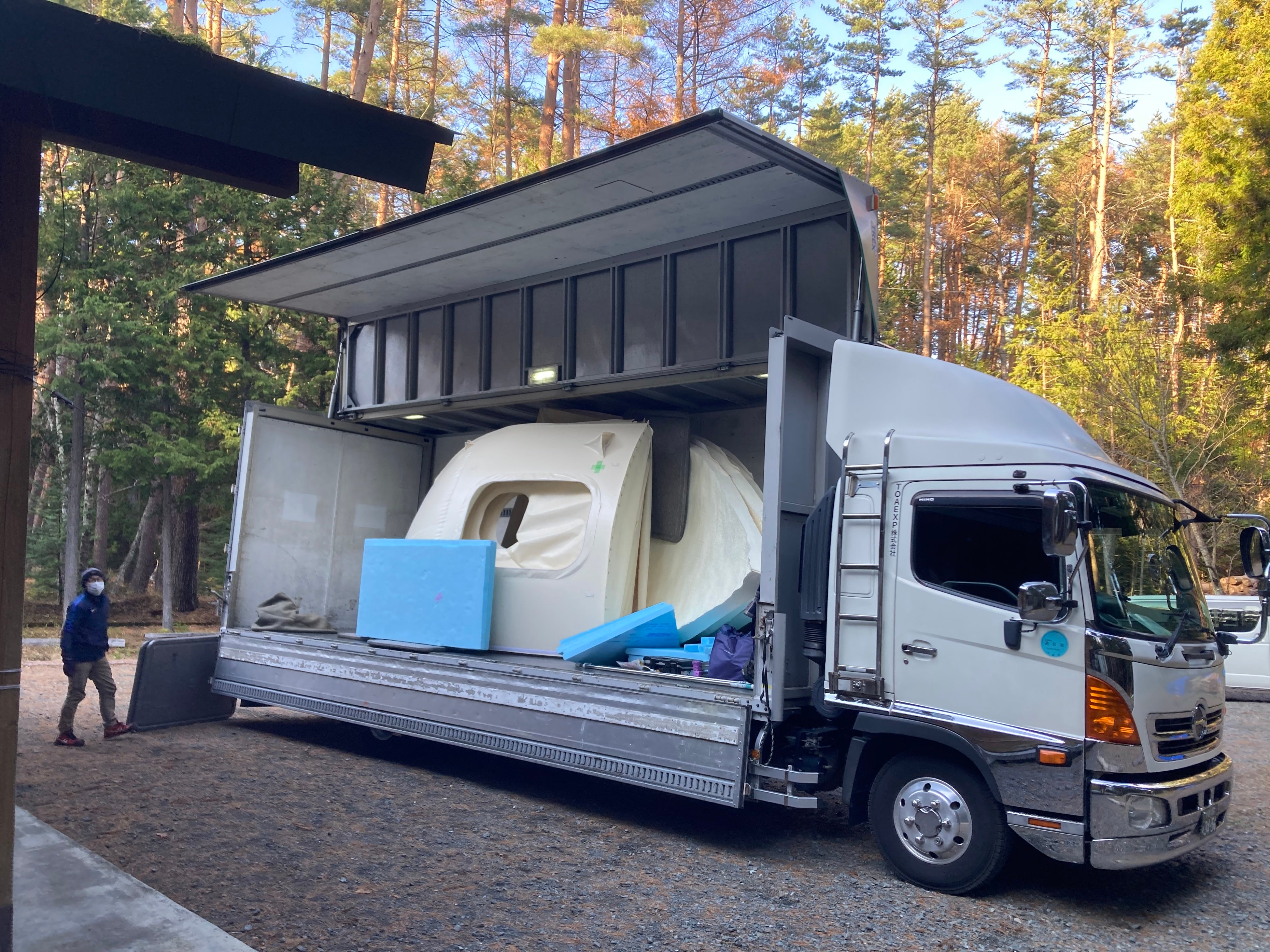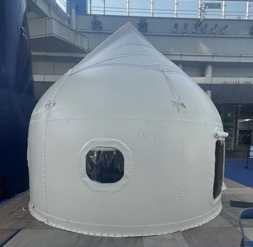 今回寄贈したインスタントハウス・バレル型はコンパクト、軽量で輸送、組み立てが簡単であるため体育館や校庭など避難所のスキマのスペースに約1時間で設置することが可能です。断熱材の壁に囲まれた内部では1~2名が横になれるため、看病が必要な方をケアするシェルターになると共に、感染症の蔓延予防の役割を担います。