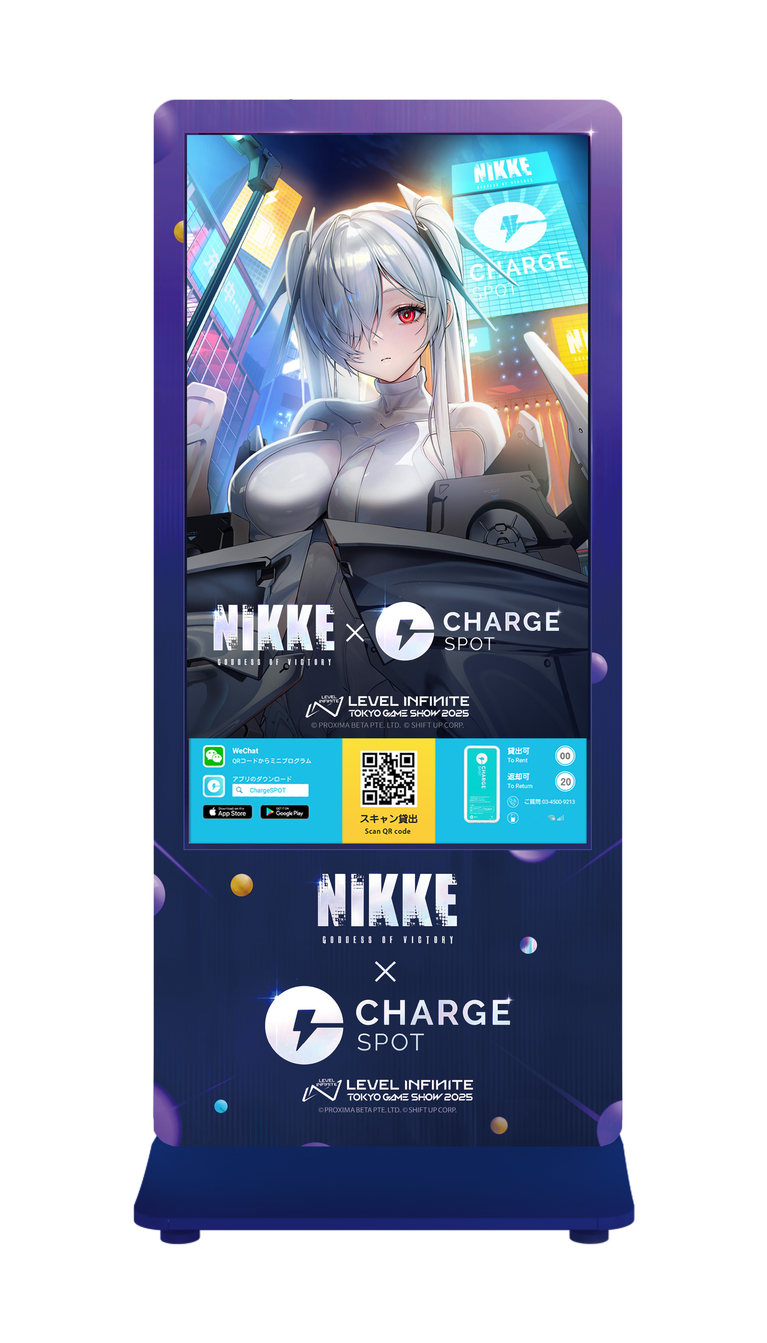 モバイルバッテリーのシェアリングサービス「ChargeSPOT®(チャージスポット)」を運営する株式会社INFORICH(本社:東京都渋谷区、代表取締役社長:秋山 広宣、以下「INFORICH」)は2025年9月25日(木)から28日(日)に開催される「東京ゲームショウ 2025」において、人気スマートフォンゲーム『勝利の女神:NIKKE』との限定コラボレーションによるモバイルバッテリーサービスを展開いたします。会期中は、5種類のキャラクターデザインによる特別モバイルバッテリーの提供に加え、ChargeSPOTバッテリースタンドの展示・映像放映、スマートフォン上にて『勝利の女神:NIKKE』アプリ提示者へのクーポン配布、ChargeSPOT利用者へのアイテムコード配布を実施いたします。