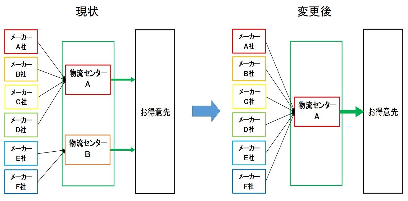食品メーカー6社とF-LINE社の重点取組のひとつである「共同配送の推進」において、北海道地区では2016年4月より取組を開始しています。今回、現在2箇所ある保管・配送拠点を2023年10月に1箇所に集約し、共同保管・共同配送により車両1台あたりの積載効率を高めるとともに配送回数を削減します。これにより納品先様への配送車両台数が削減され、荷受時の負担も軽減できるものと考えています。
