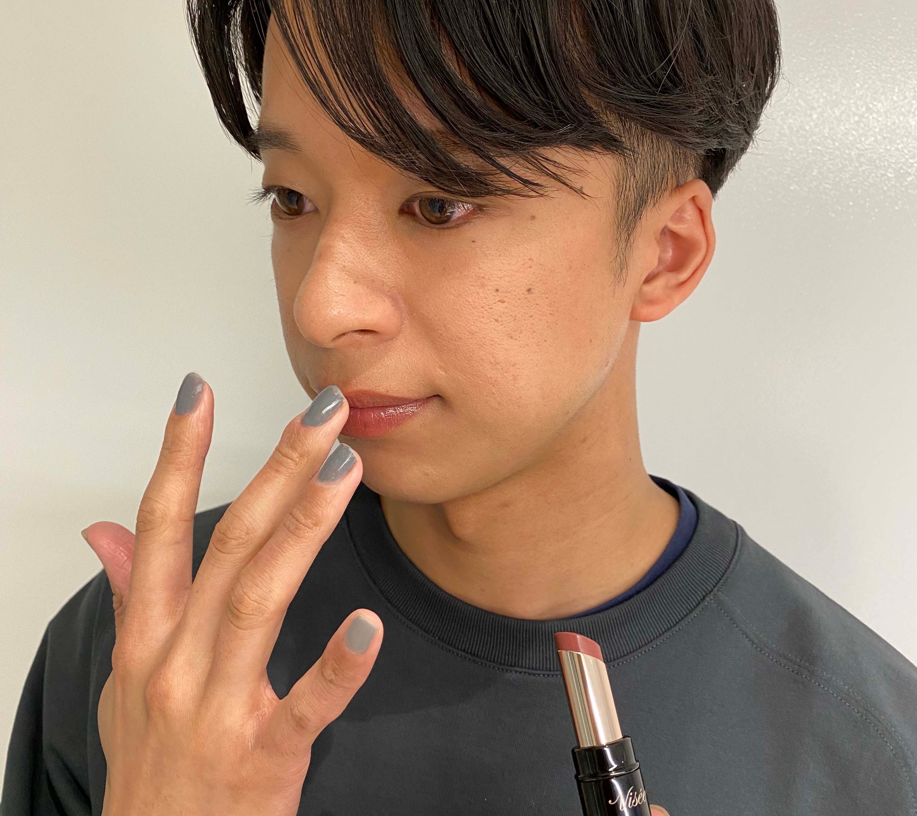 ■ポイントメイク:唇にツヤを取り入れて明るい顔色に