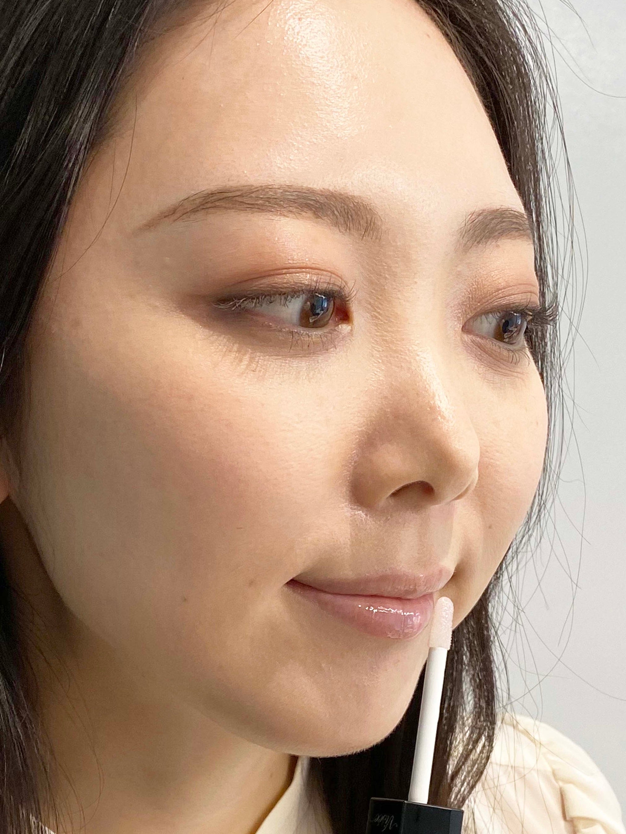口紅の上にリッププランパーを重ねると、発色に加えてツヤを最大限に楽しむことができます。