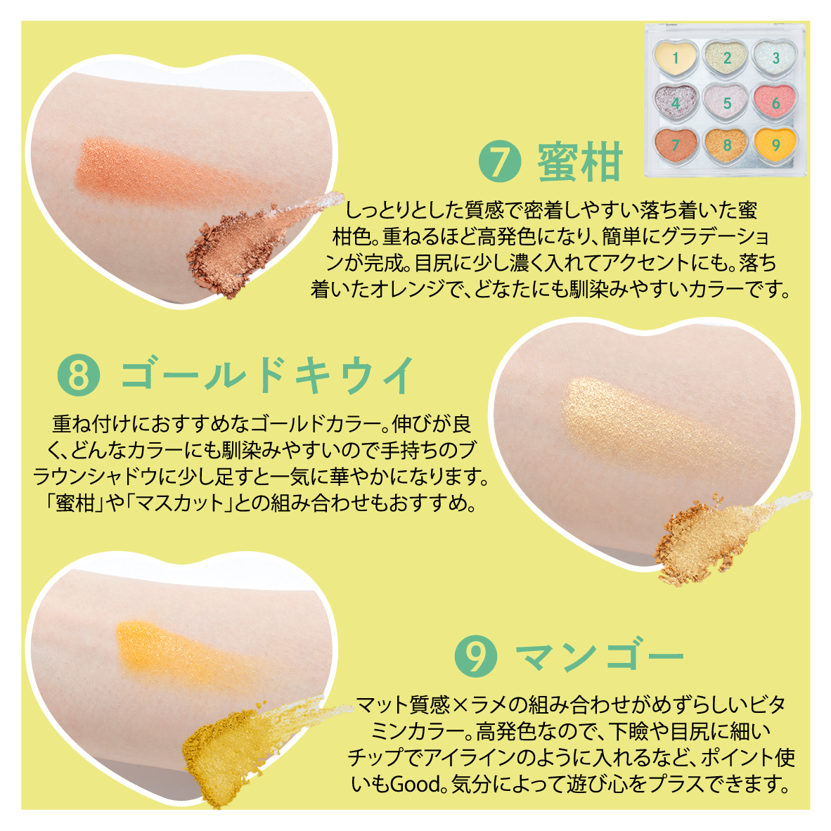 ⑨ マンゴー:高発色なビタミンカラー。ポイント使いでメイクに遊び心をプラス!